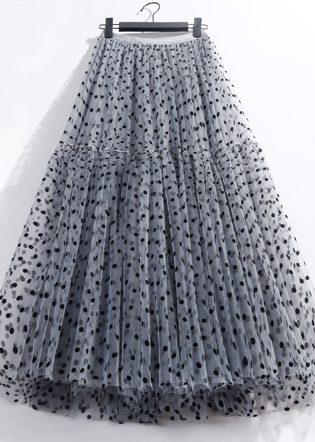 Grey Patchwork Tulle Skirt Wrinkled Elastic Waist Spring